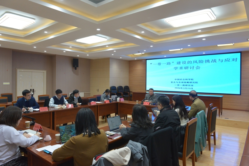2026年3月23日下午,“一带一路”研究室在亚太与全球战略研究院二楼会议室举行“一带一路”建设的风险挑战及应对研讨会。陈新副院长出席并致辞,中国人民大学、中国社科院信息情报院、拉丁美洲研究所、中国边疆研究所和日本研究所等机构专家共十余人参加交流。